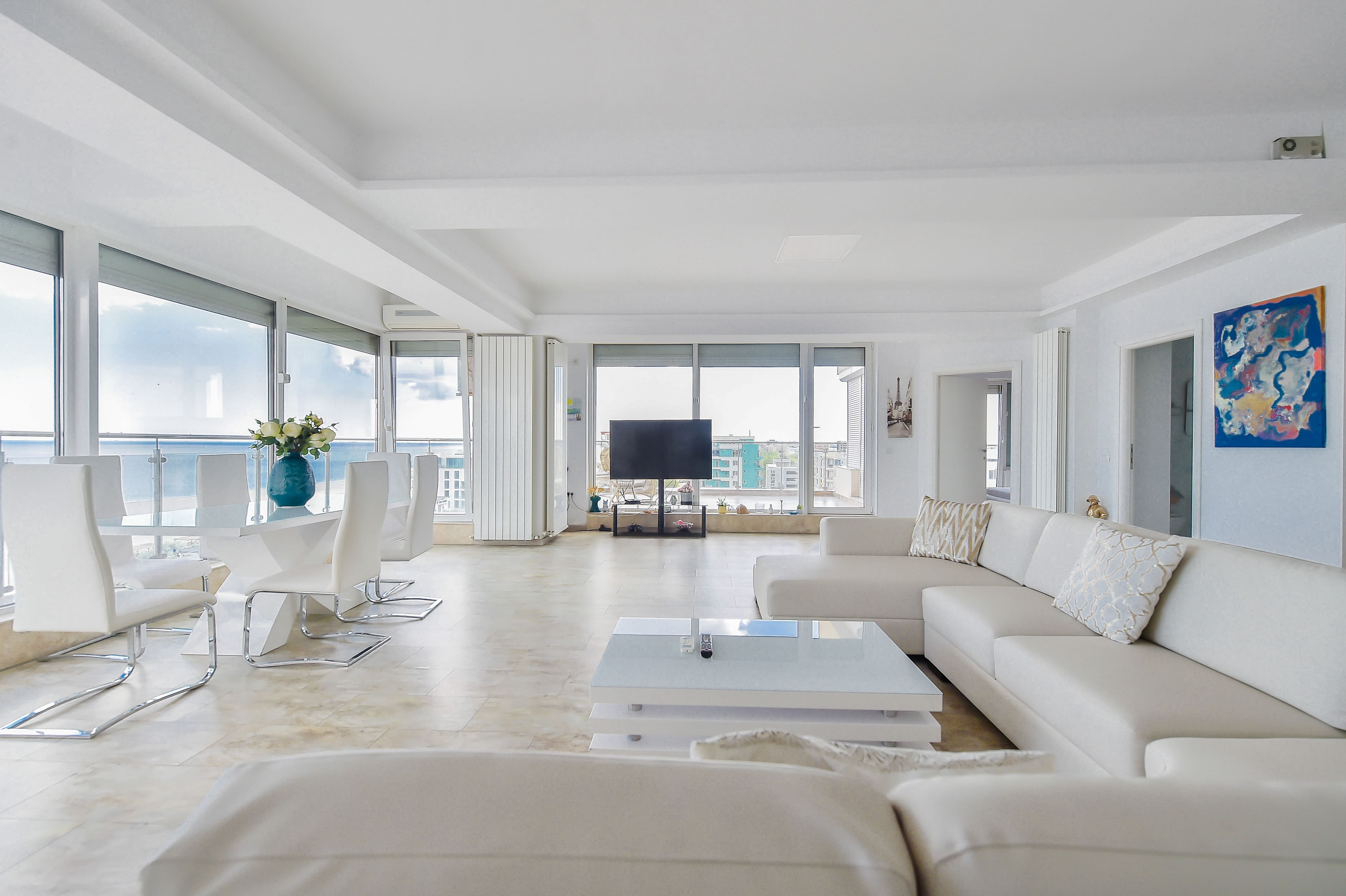 Seaview Penthouse Mamaia este un apartament foarte spatios, frumos mobilat, in stil minimalist, chiar pe malul marii, vedere minunata, terasa foarte mare. Gazda foarte amabila.